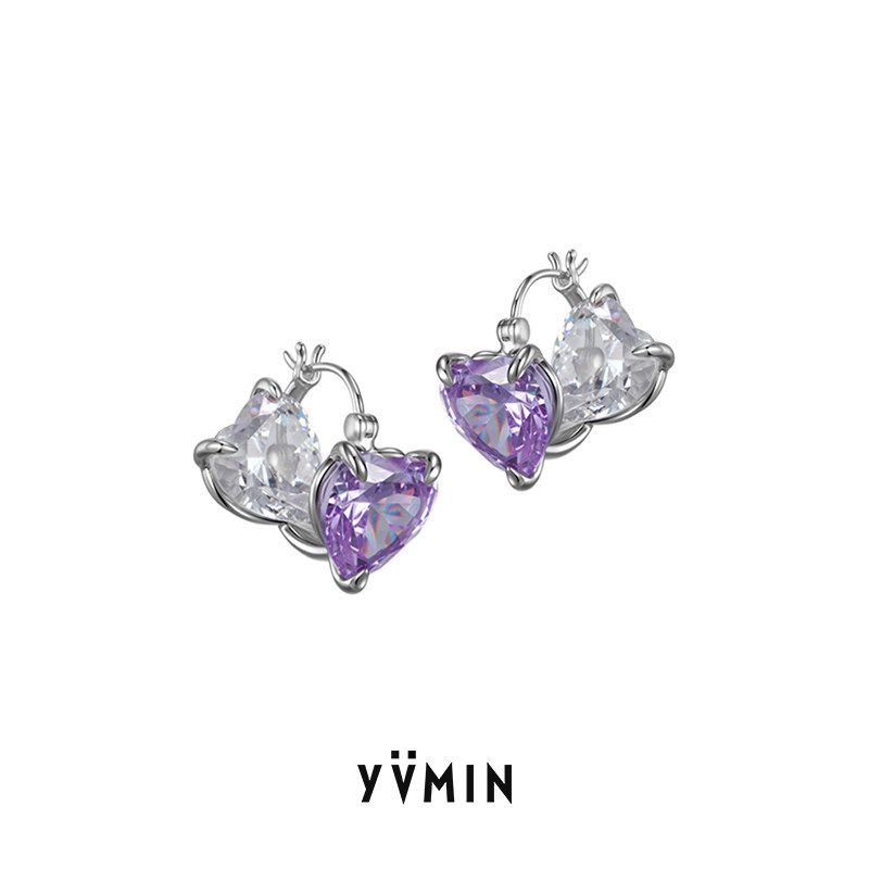 Yvmin尤目涟漪21春夏系列紫色心形宝石液化蝴蝶耳钉s925银单只 图片价格品牌报价 京东