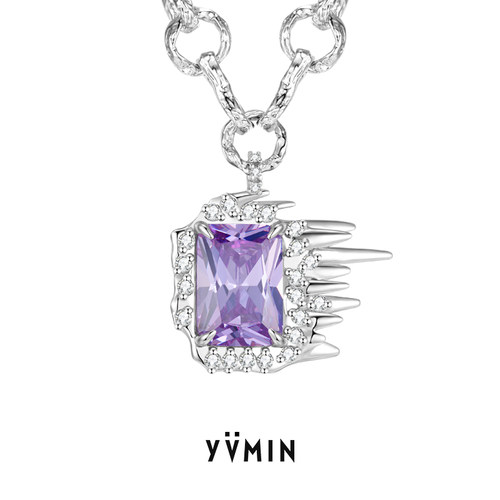 Yvmin尤目涟漪21春夏紫色心形宝石膨胀锁链戒指爱心指环925银
